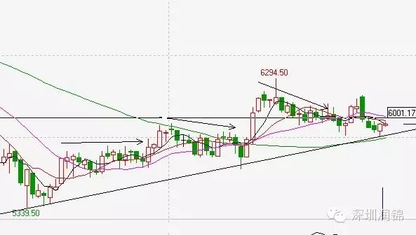 2.銅:本周宏觀面影響較上周明顯減弱,銅價(jià)多數(shù)表現(xiàn)技術(shù)型行情,走勢(shì)圖如下: